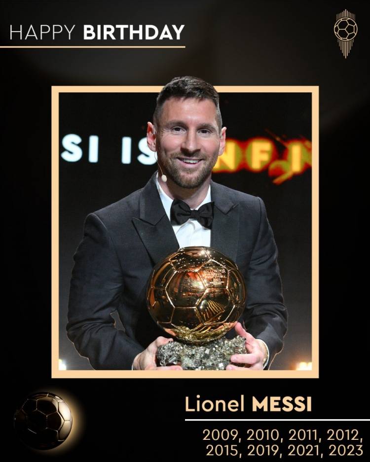 还有金球奖官方,他们这样写:2009、2010、2011、2012、2015、2019、2021、2023……生日快乐,莱昂内尔·M8SSI!这是比较有创意的写法,也直接说明梅西的身份:8金球奖先生。此外还有阿根廷国家队、法甲、欧冠、纽维尔老男孩等俱乐部或机构在线祝球王生日快乐。